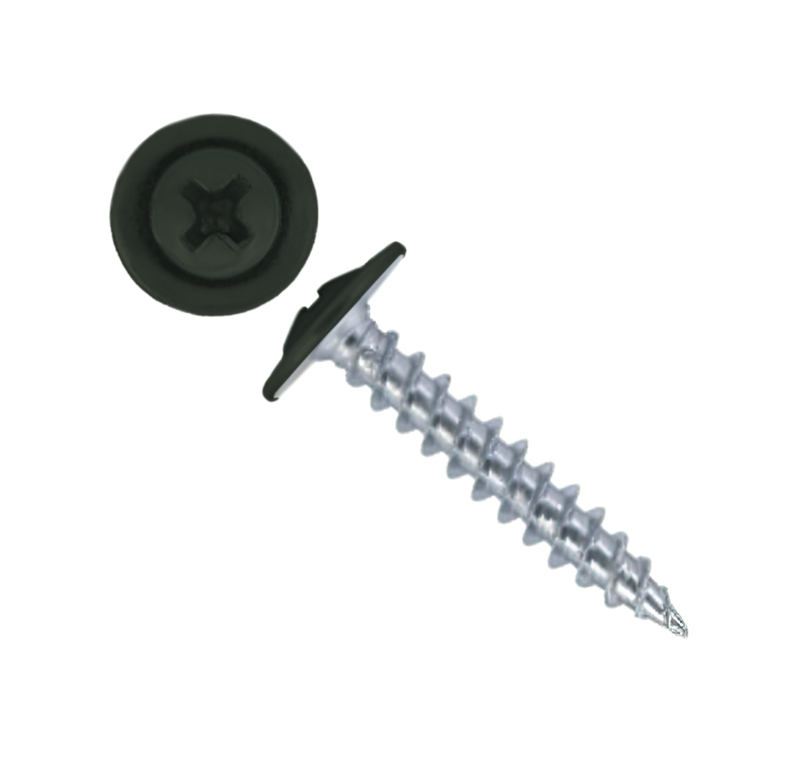Саморез с напрессованой шайбой (ПШ) - имеют широкую плоскую головку под крестовидную биту (PH2), которая одновременно выполняет роль шайбы. Наконечник оцинкованный - острый.