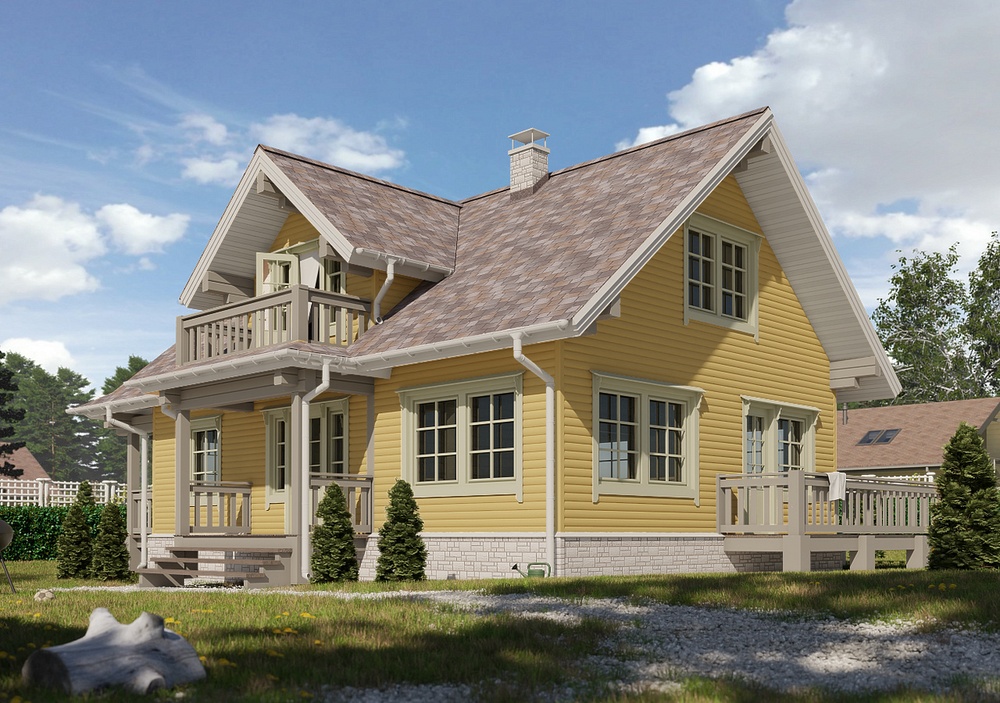 Сайдинг цвета спелого банана подходит для фасадов любой сложности и отлично показывает себя в непростых климатических условиях - не теряет насыщенности, не желтеет. Оттенок особенно красив в классических сочетаниях со светлыми аксессуарами и более темной кровлей.